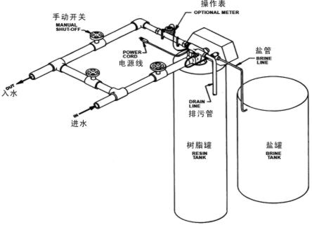 2、 盐罐安放应靠近树脂罐,为提高吸盐率,应尽量缩短吸盐管的长度尺寸。