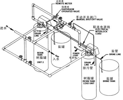 和残留的空气会进入软水器造成树脂随水流跑出树脂罐)。