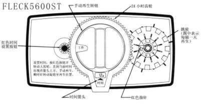 6、以凌晨两点为例:表示2a,再生时间为次日。再生时间为 2a时,仪表盘调整时间应与当时北京时间相对应,比如此时时间为上午9 点,仪表时间应调至9a,或当时时间为北京时间为下午 3点(15点),仪表时间应调至3p.如果想根据自己时间调整再生时间,首先要把仪表时间调至与此时北京时间一致,在与相应的再生时间调整。比如现在是上午10 点10a,要调整为明天上午9点9a再生,首先把表盘时间上午10点10a调至下午10点10p,此时 再生时间为下午2点,再根据上午9点与下午2点时的时差为:5 个小时。此时在时间上在加5小时,10+5=15-12为3 a,所以要调至3 a,以次类推。此时是下午时,如下午3点3p要调整为明天上午9点9a再生,首先把表盘时间下午3点3p调至上午3点3a,此时再生时间为下午2点,再根据上午9点与下午2点时的时差为5个小时。此时在时间上在加5小时,3+5=8小时为8a。如果要在下午2点2p再生,把当时北京时间反差为(加12个小时即可)与当时时间相反,3点3p时再上减去一小时,依次类推。