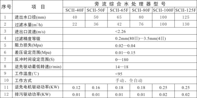 SCII-F系列旁流综合水处理器安装于系统主管旁路,取部分循环水量进行处理,经处理达标的水质再返回系统内循环,因此叫做旁流水处理。