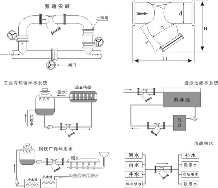 ◎ 工业循环用水过滤——在对水质有一定要求的设备如:冷却塔、轧机、